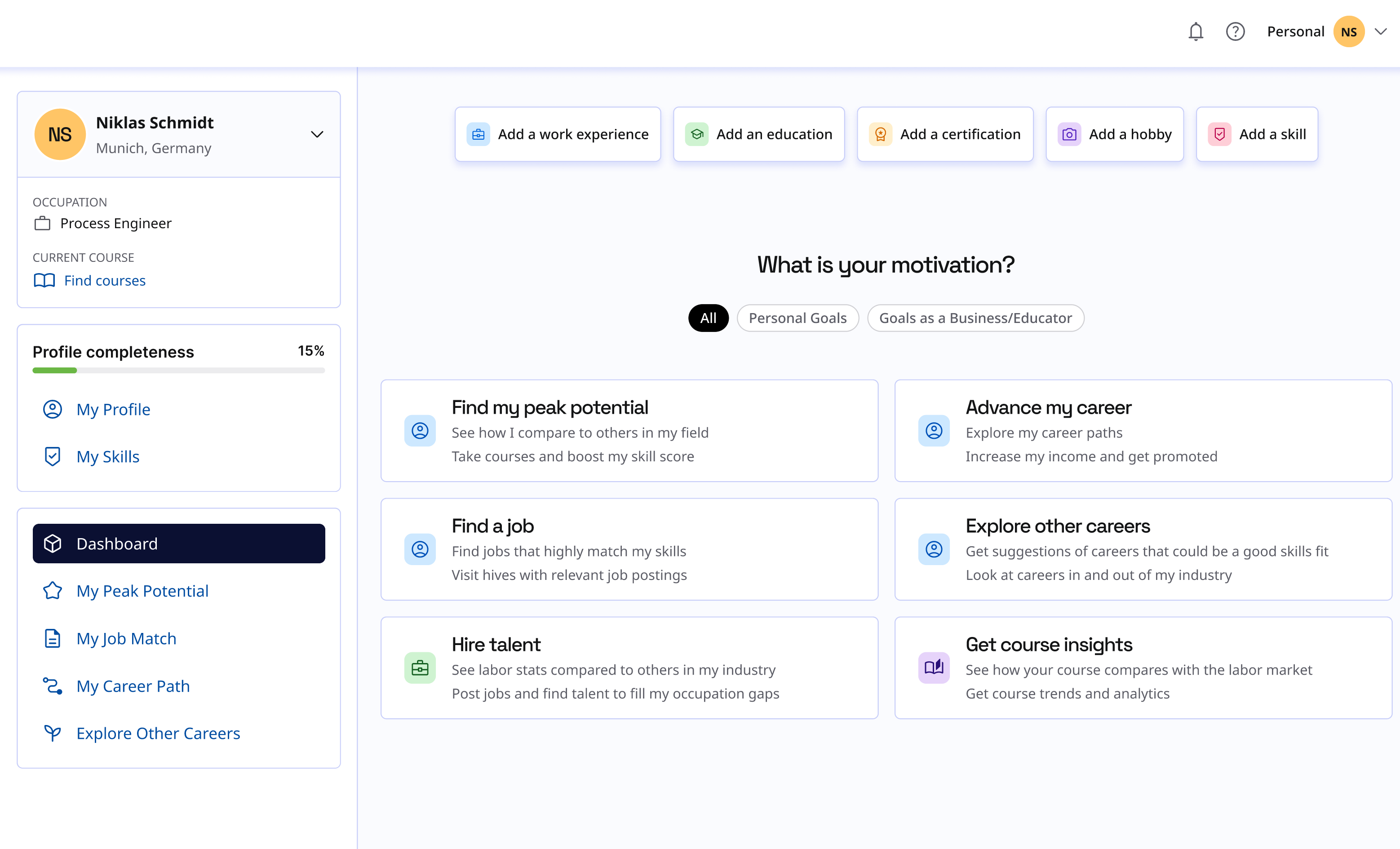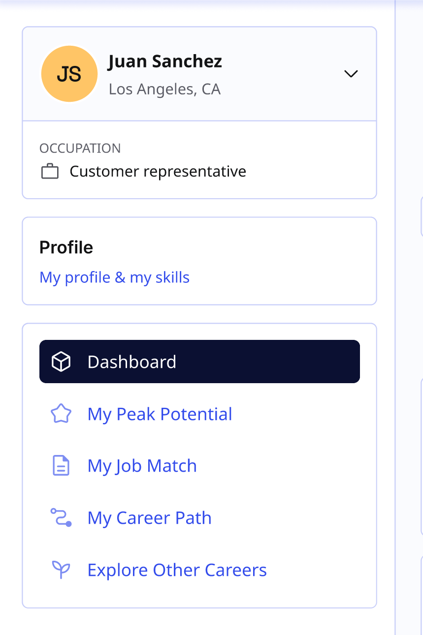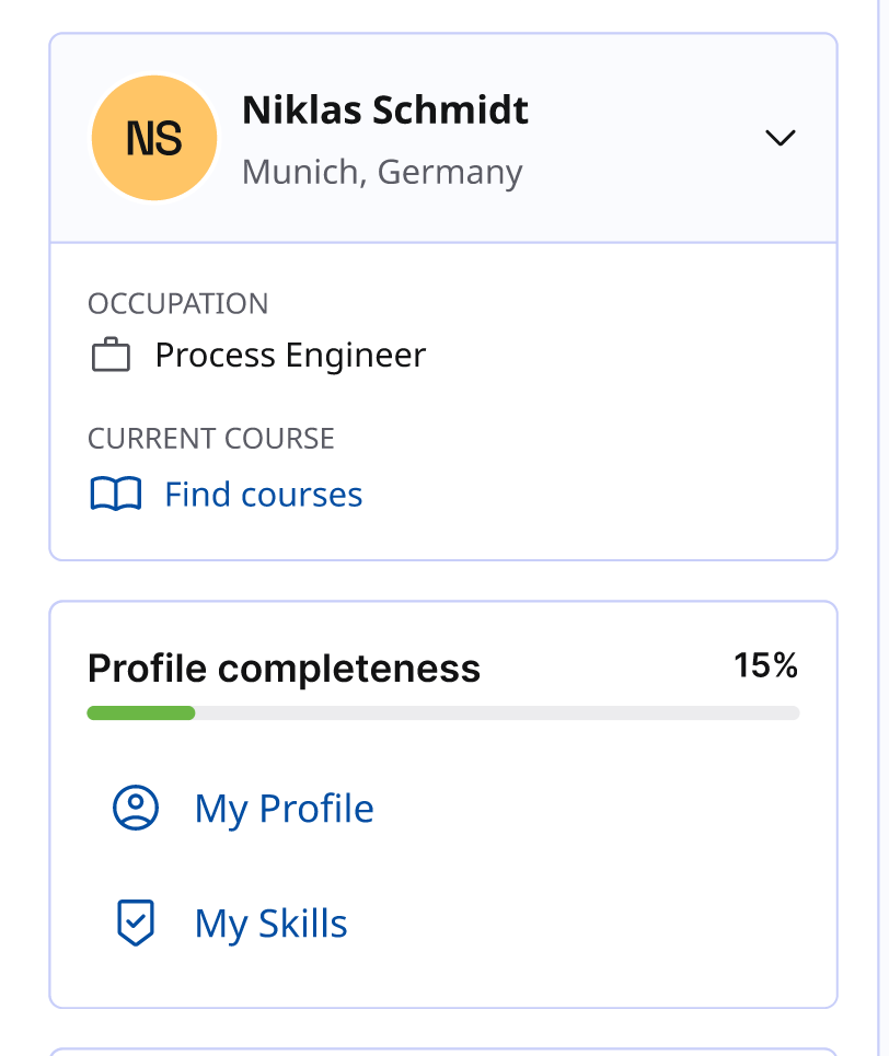 If you have multiple profiles (e.g., worker/learner, employer, educator, or government/NGO), you can easily switch between them: