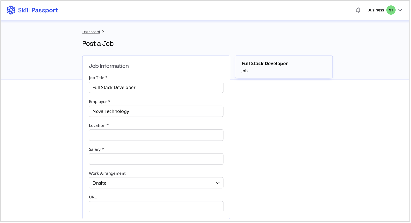 Learn how to create, manage, and import job postings through your business profile on Skill Passport.