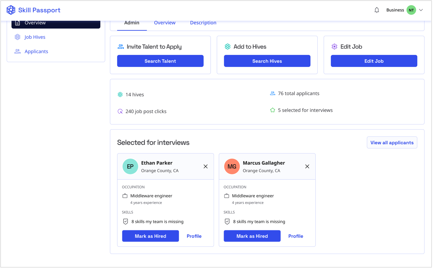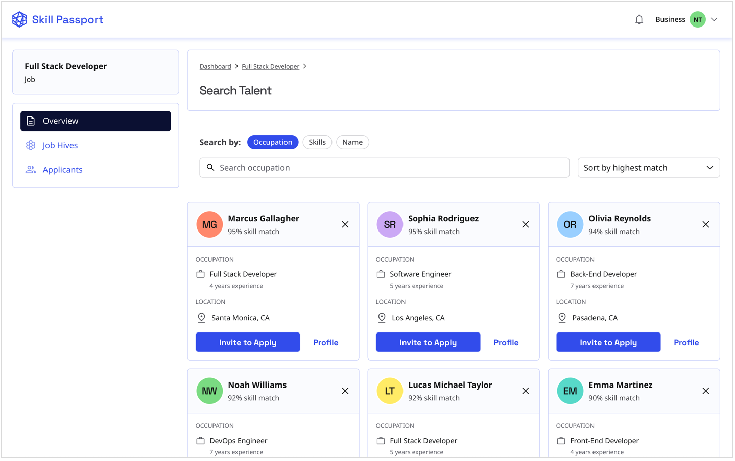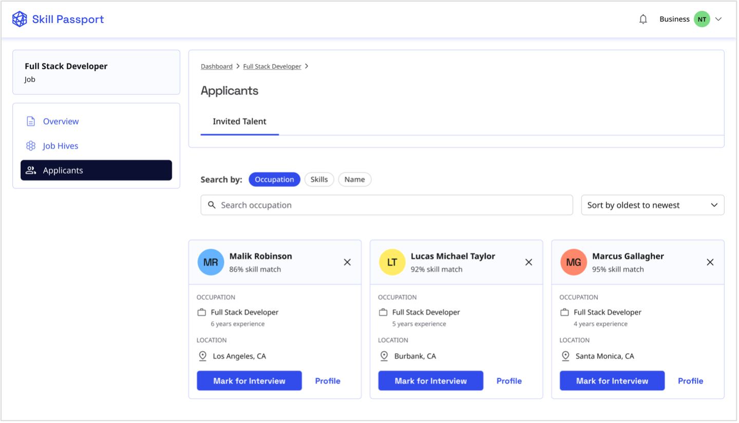 Learn how to find, invite, and manage candidates through Skill Passport's recruitment tools.