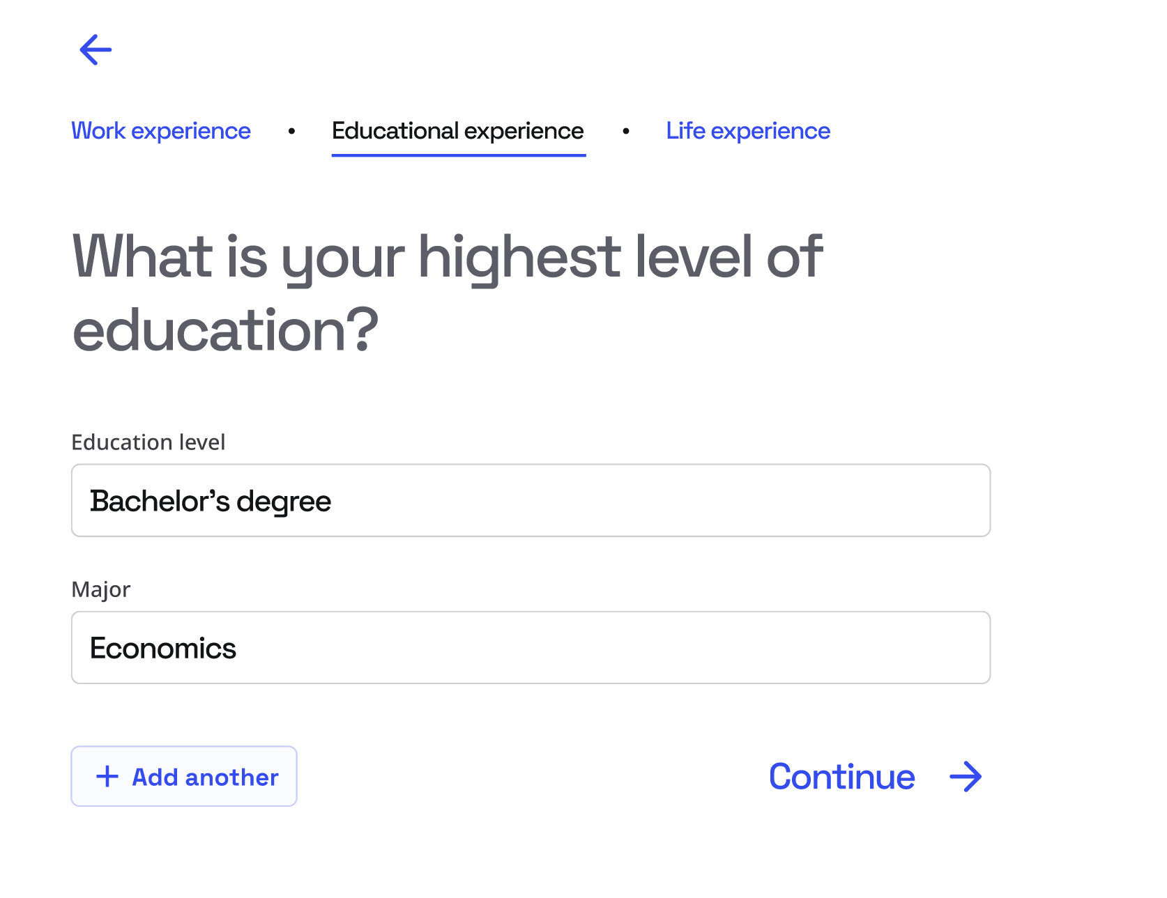 2. أدخل أعلى مستوى تعليمي ومجال دراستك.