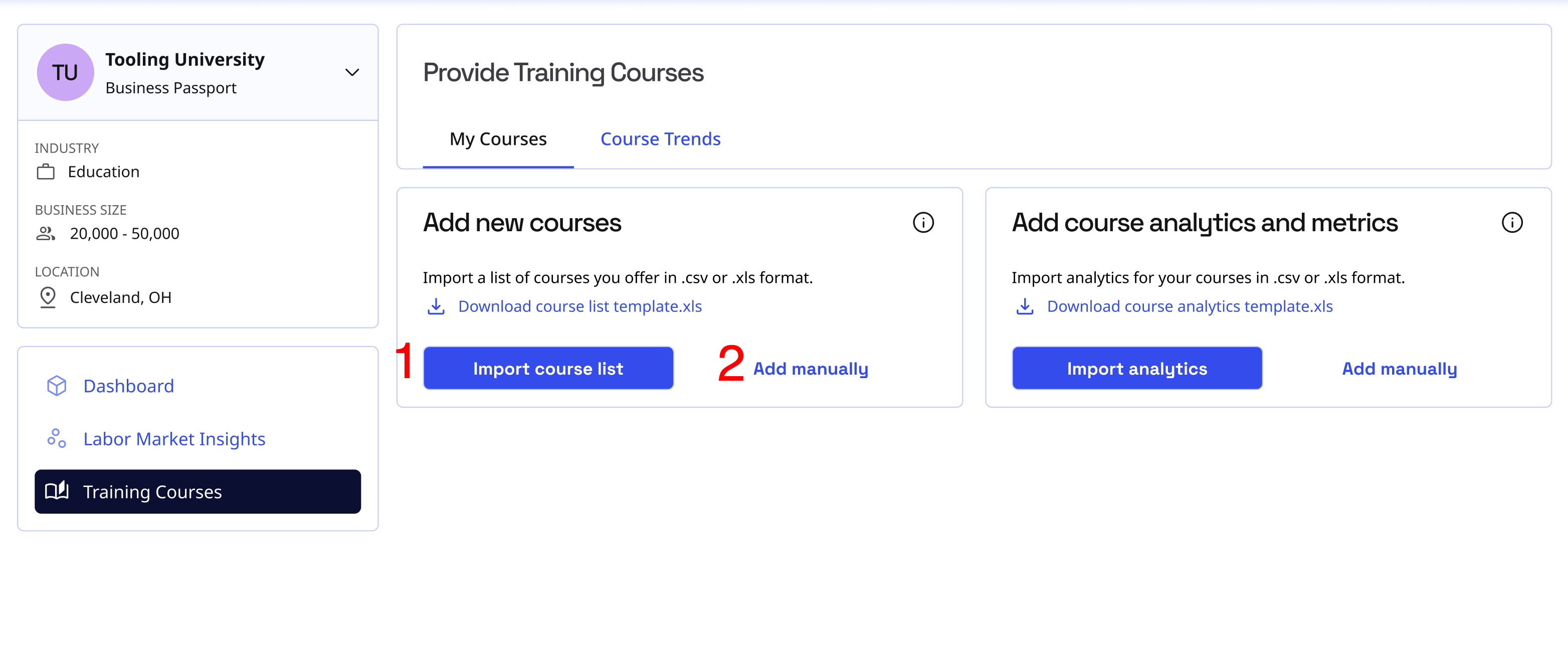 Learn how to efficiently add your course catalog to Skill Passport using our bulk upload feature or manual entry system.